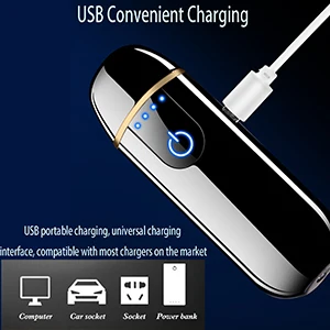 Luzes de tempo do isqueiro USB, luzes de parada piscam quando a bateria está fraca e descarrega para proteger a bateria, luzes de carregamento, luzes apagadas quando totalmente carregadas.