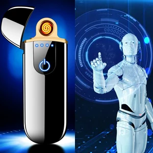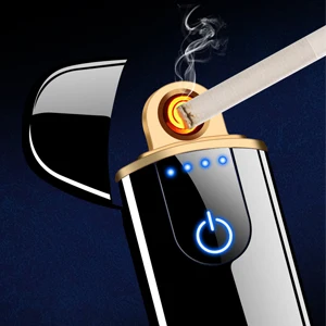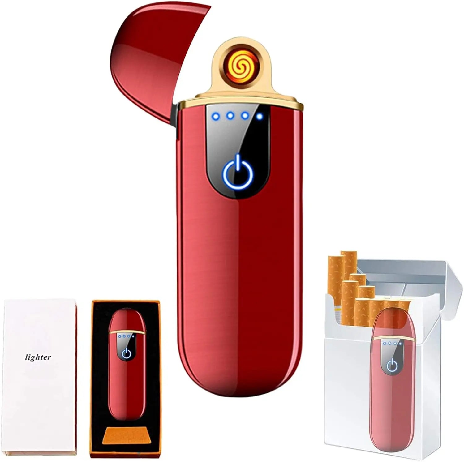 Isqueiro eletrônico inteligente – USB recarregável com carregamento cíclico – Acendimento por toque, à prova de vento, sem chama, com indicador de energia – Ideal para presente